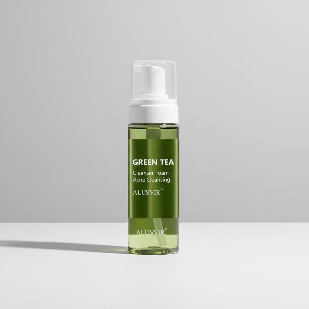 Découvrez le pouvoir rafraîchissant du thé vert avec la mousse nettoyante au thé vert ALUSVIR, spécialement formulée pour nettoyer et purifier en profondeur votre peau tout en ciblant l'acné et les imperfections.